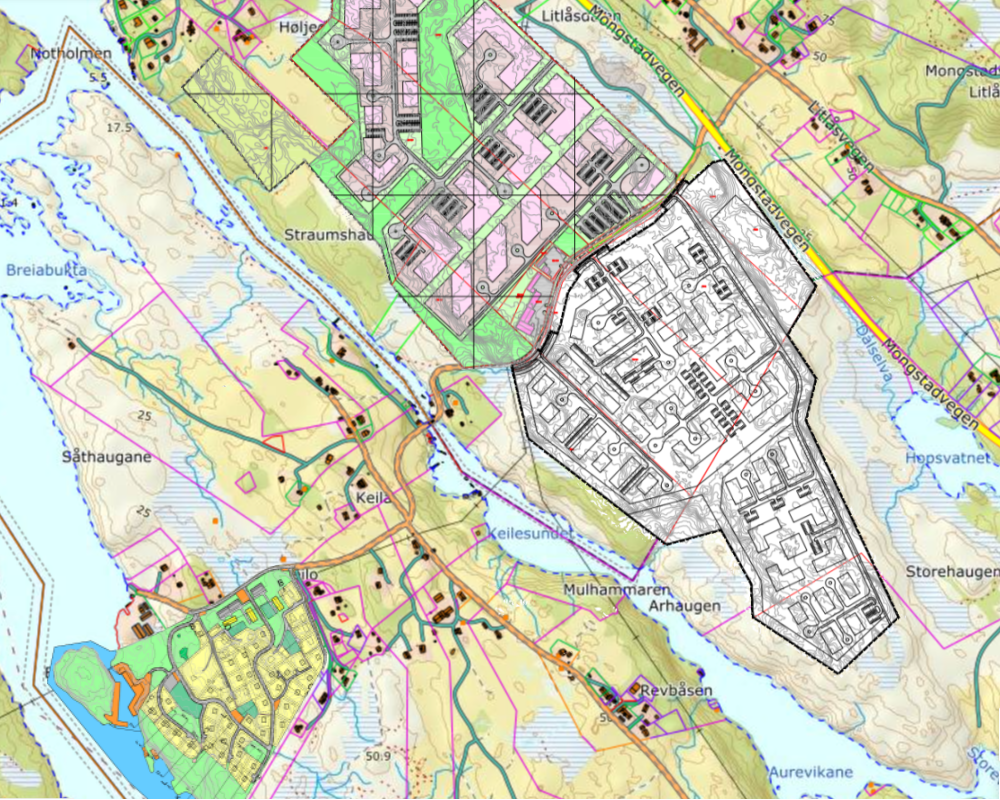 Foreløpige plankart for Kaland Næringsområde og Keilevegen Næringsområde
